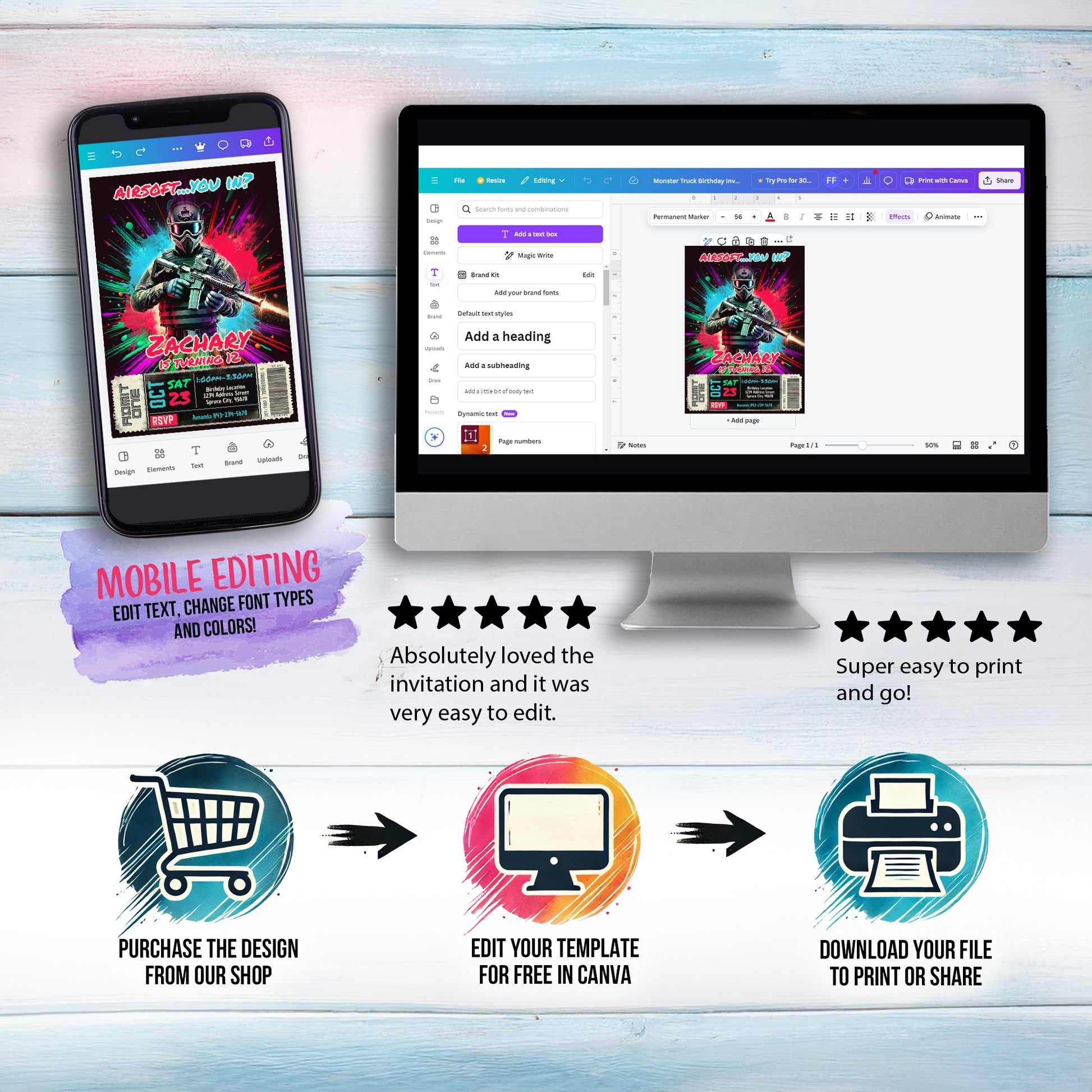 Airsoft Birthday Invitation - Paintball Gun Party Invite