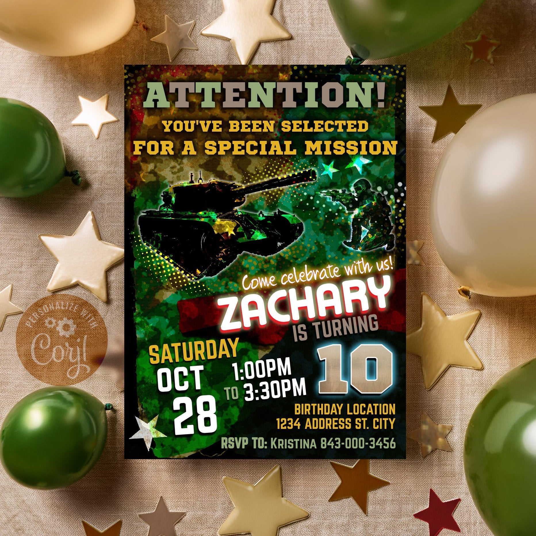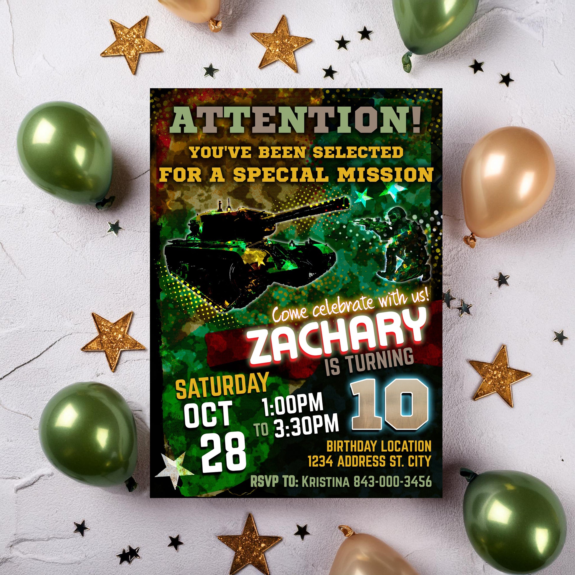 Army birthday invitation printable army party digital invite