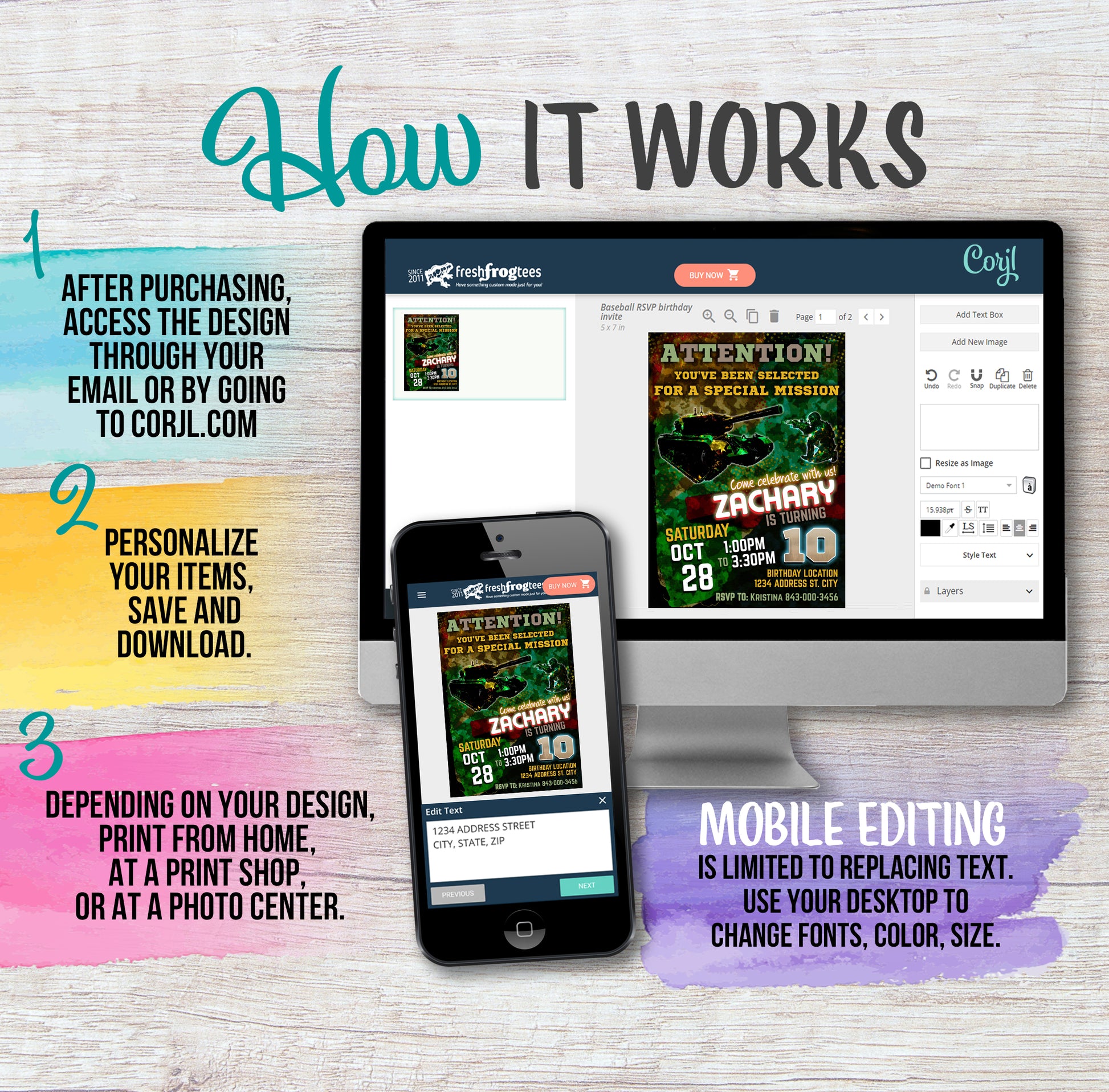 Edit your items at Corjl.com right after purchasing.