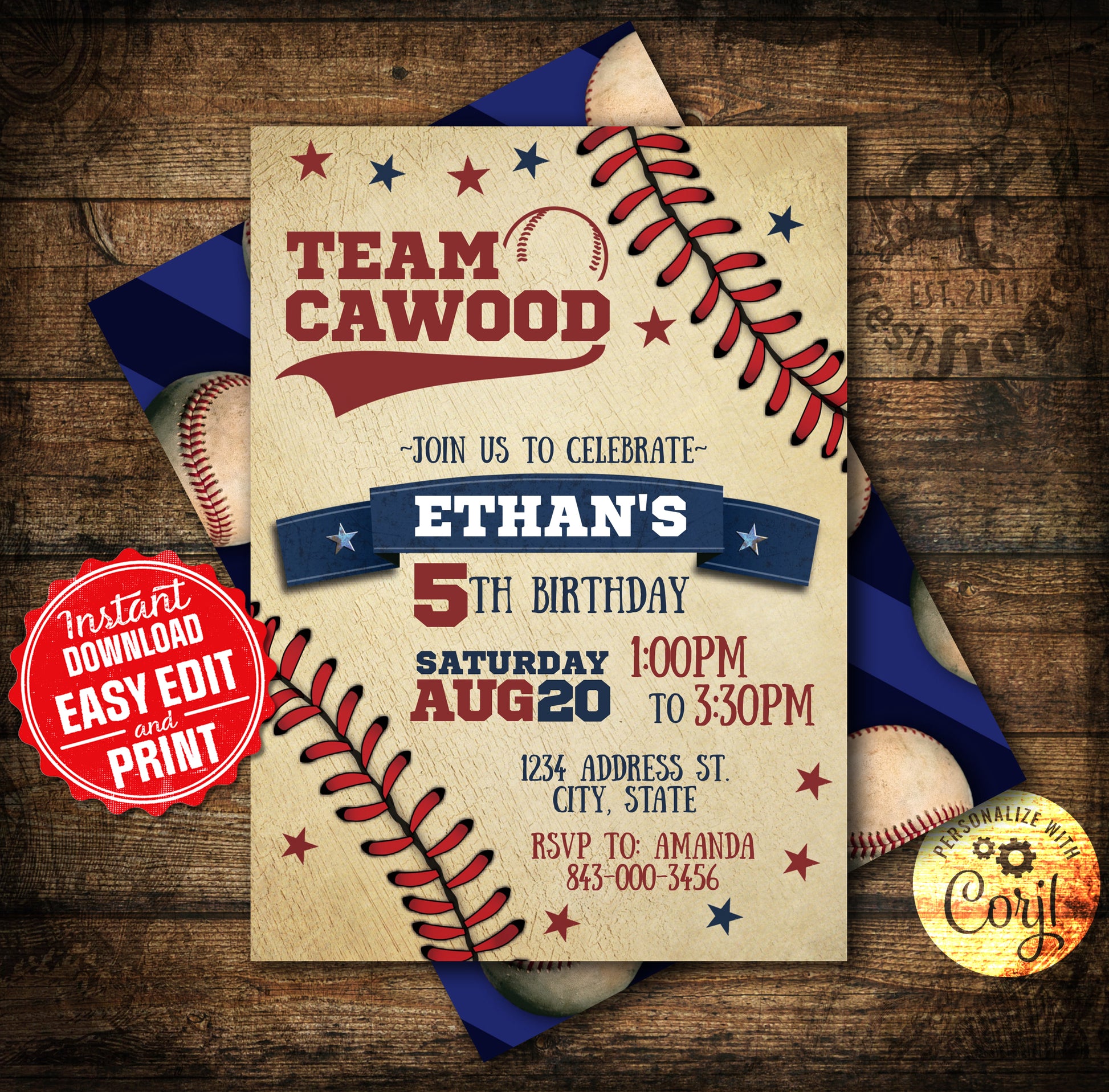 Editable Rookie of the Year Baseball Birthday Party Invitation instant download.