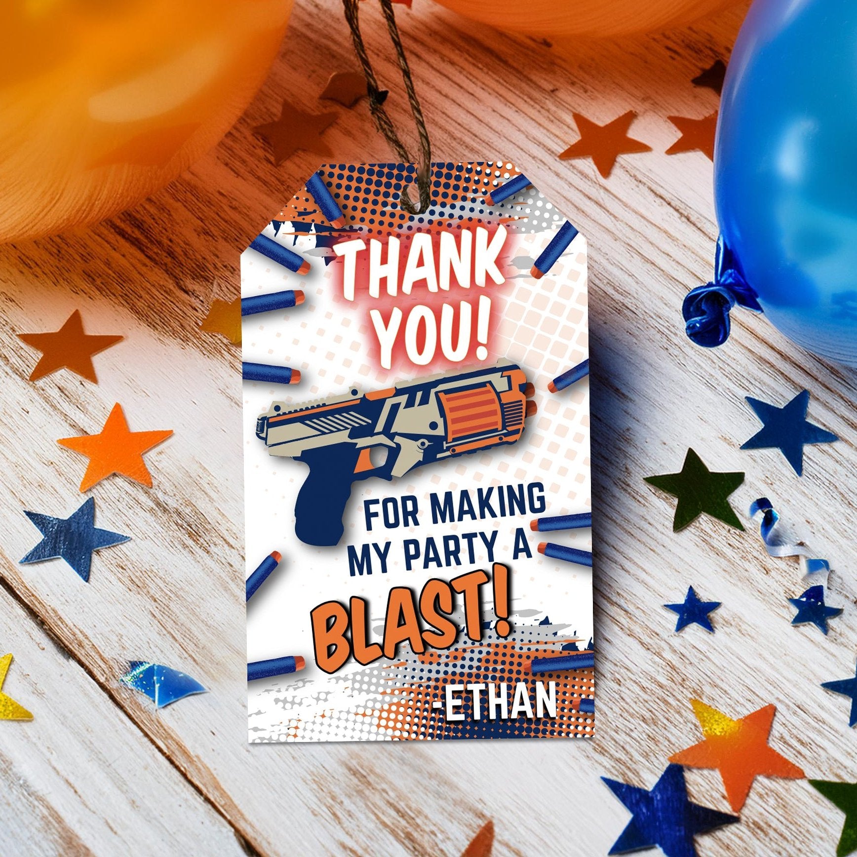 Orange & Blue Dart Gun Party Favor Thank You Tag Template