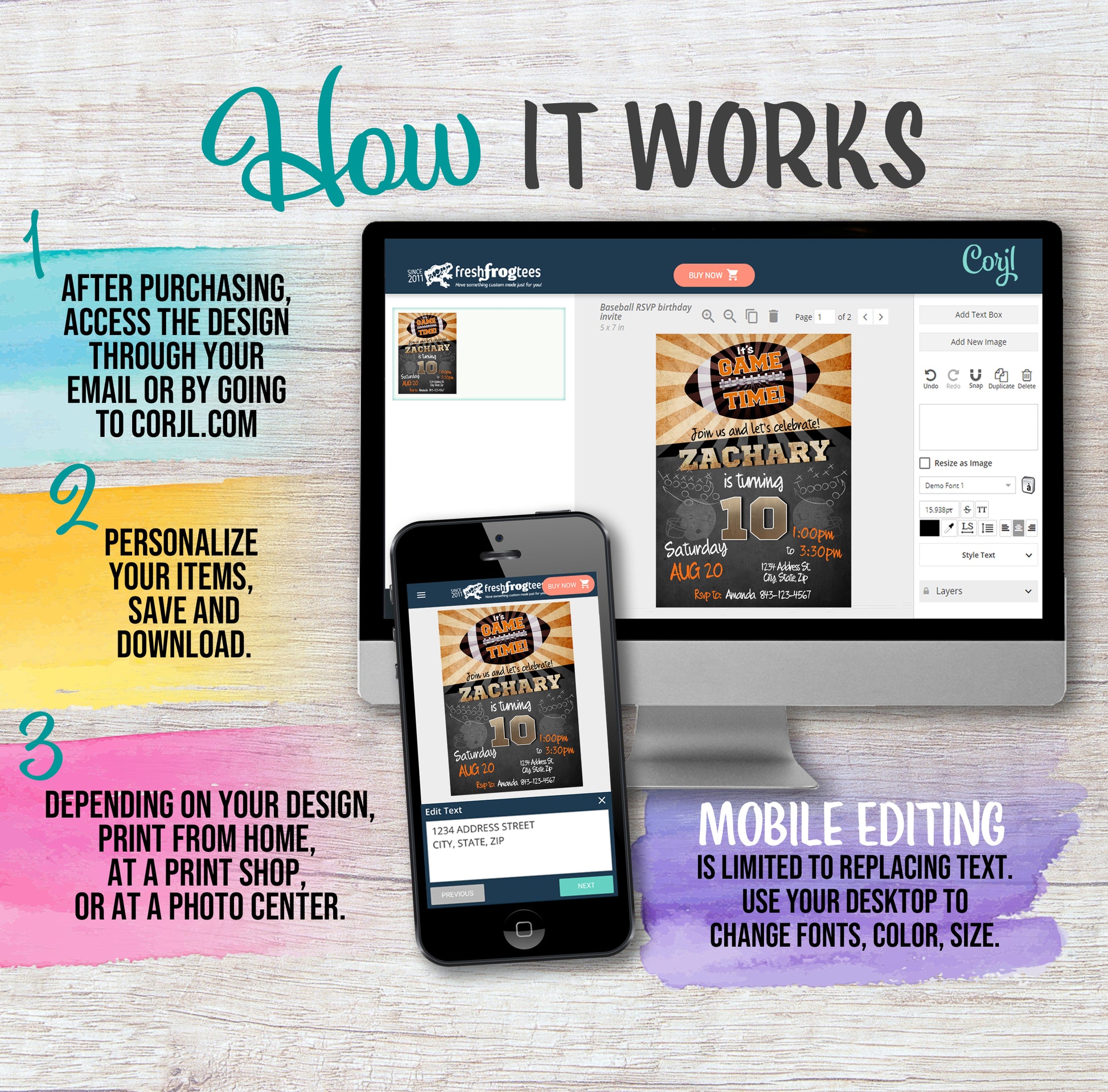 ✔ Easy to use platform. Approve your proof immediately after personalizing/download and print.