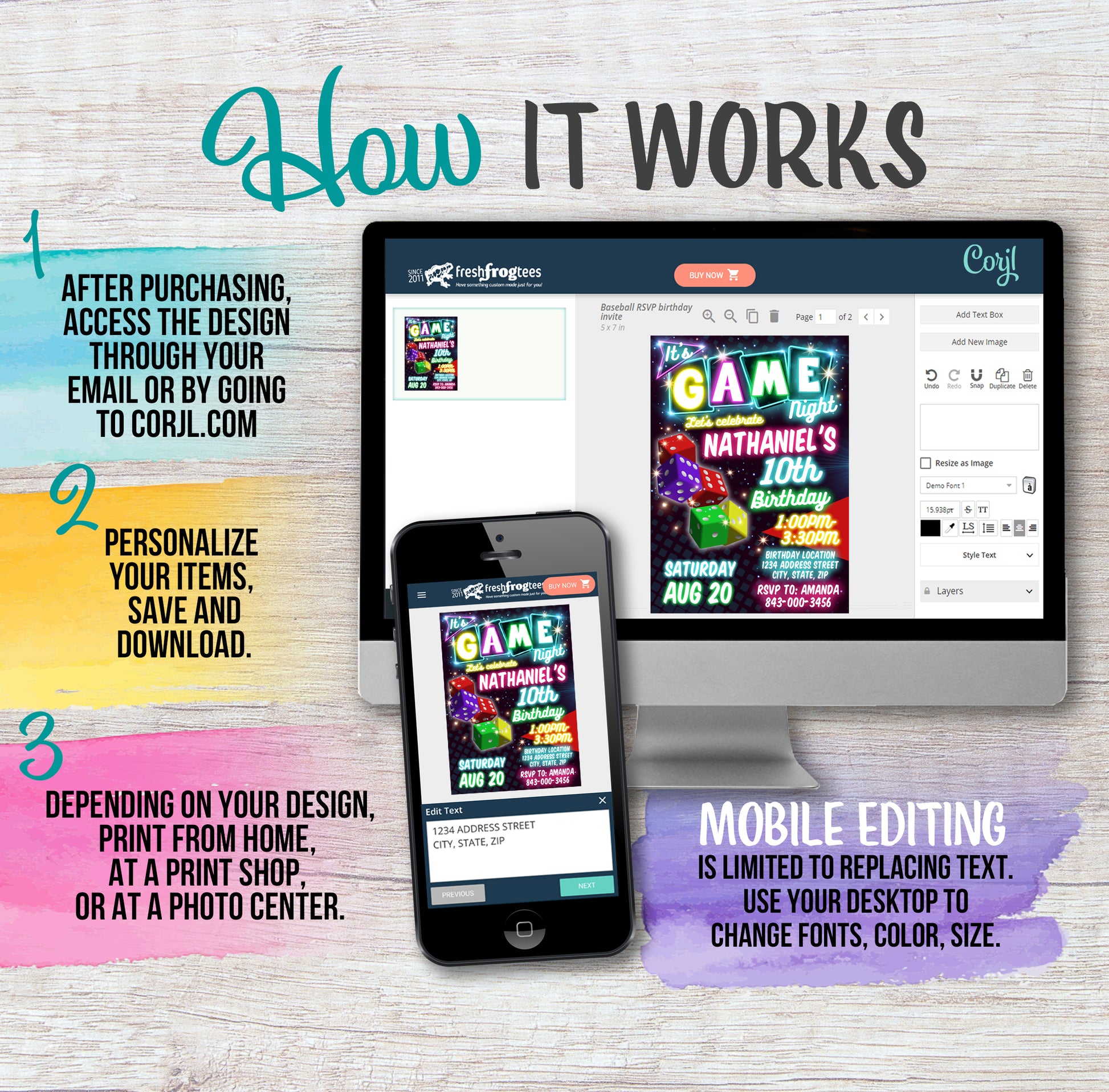 Edit your items at Corjl.com right after purchasing.