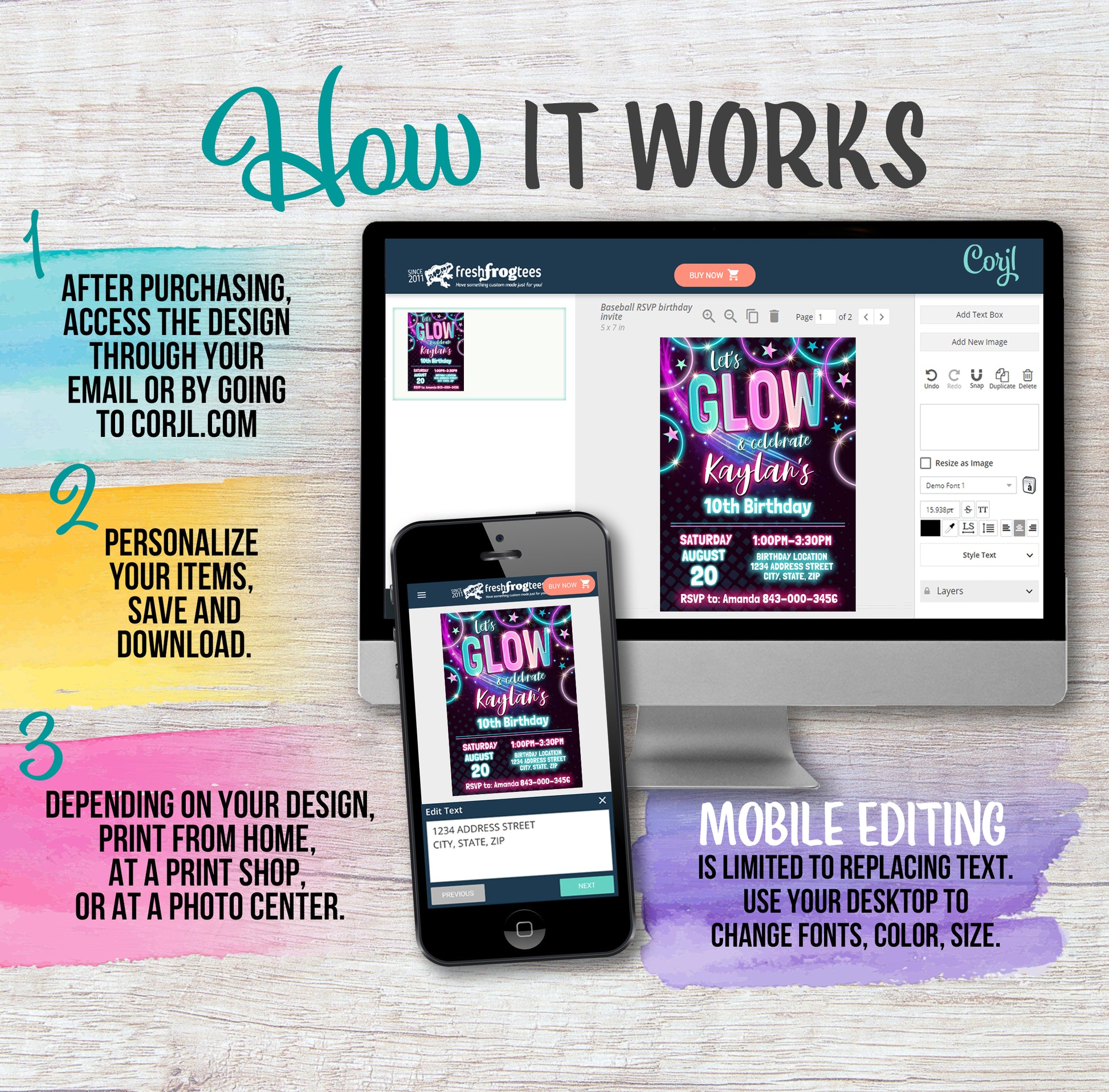 Edit your items at Corjl.com right after purchasing.
