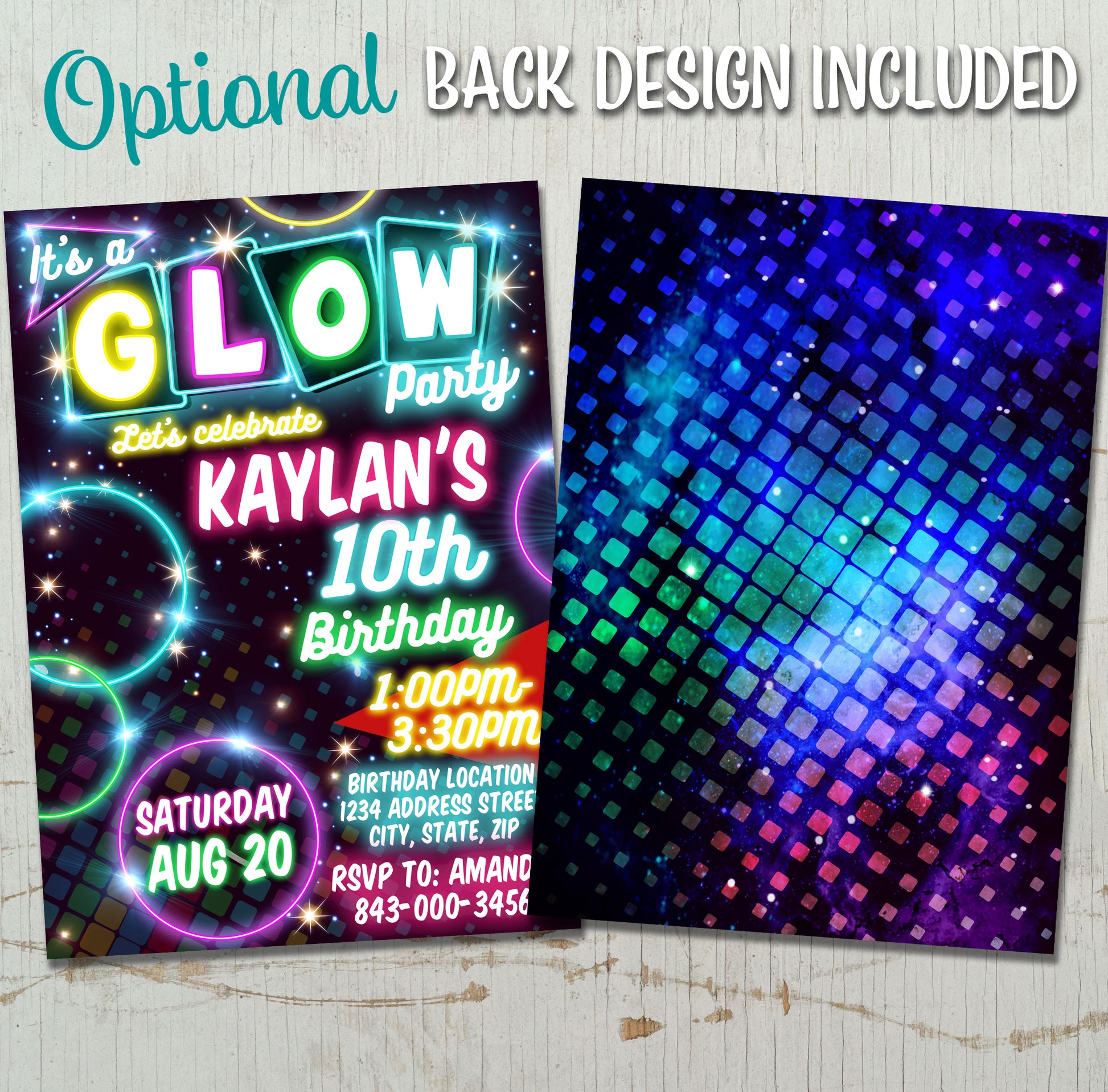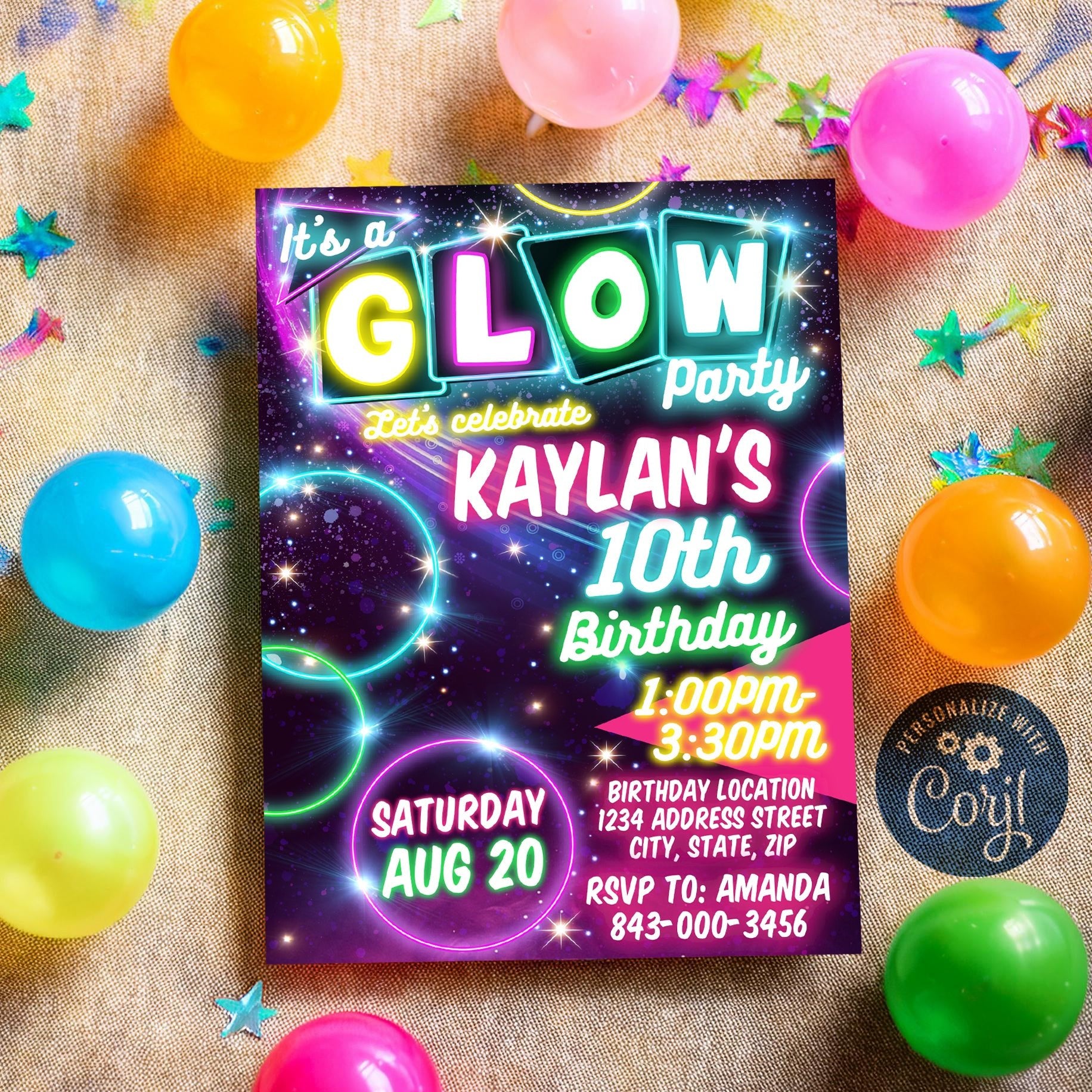 Glow Party Birthday Invitation | Neon Kids Party Invite