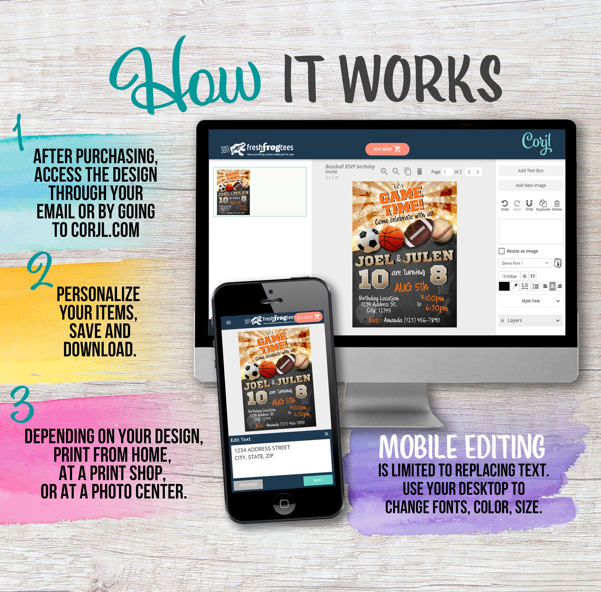 Edit your items at Corjl.com right after purchasing.