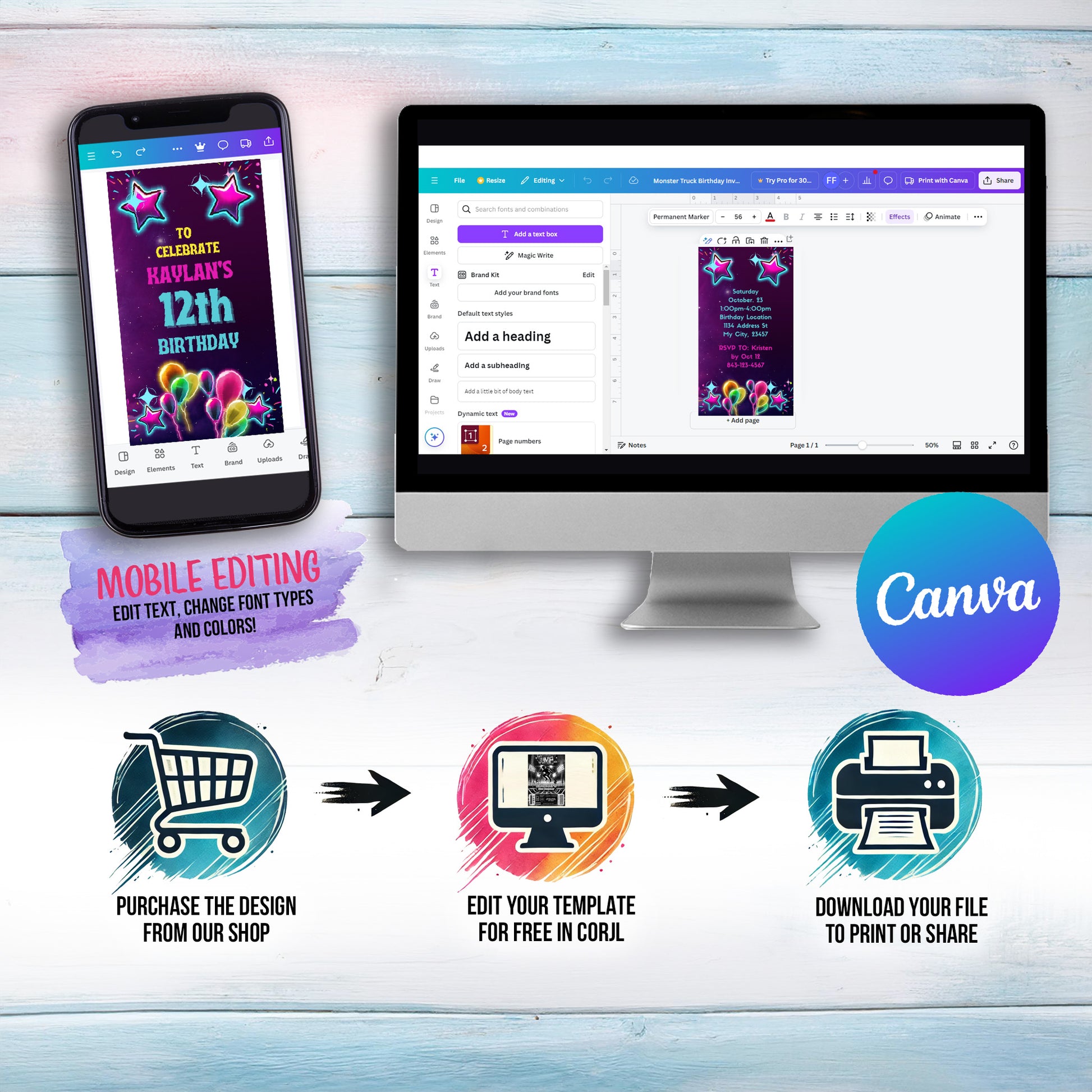 ✔ Personalize using your computer, or make basic edits using your phone or mobile device.