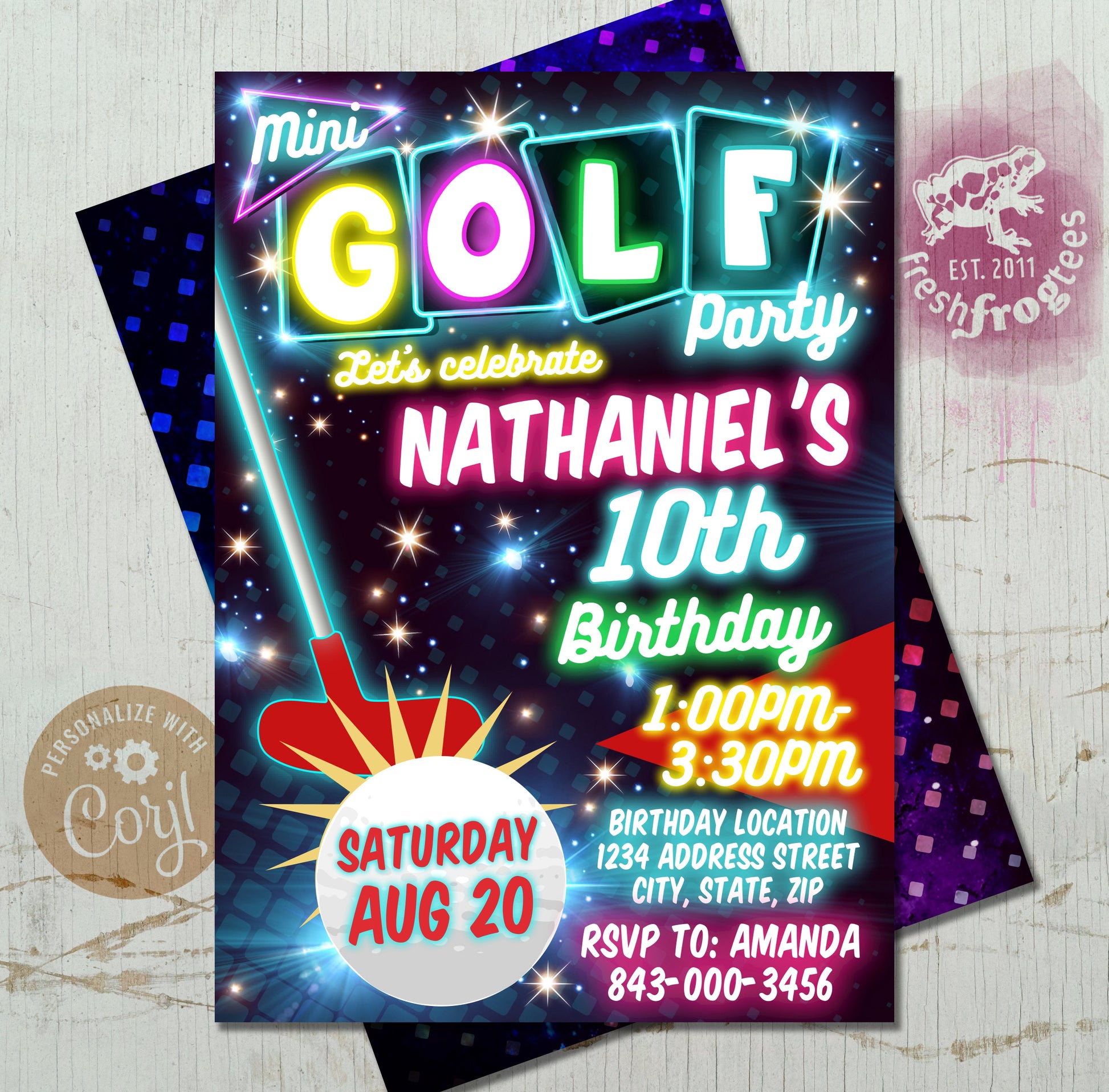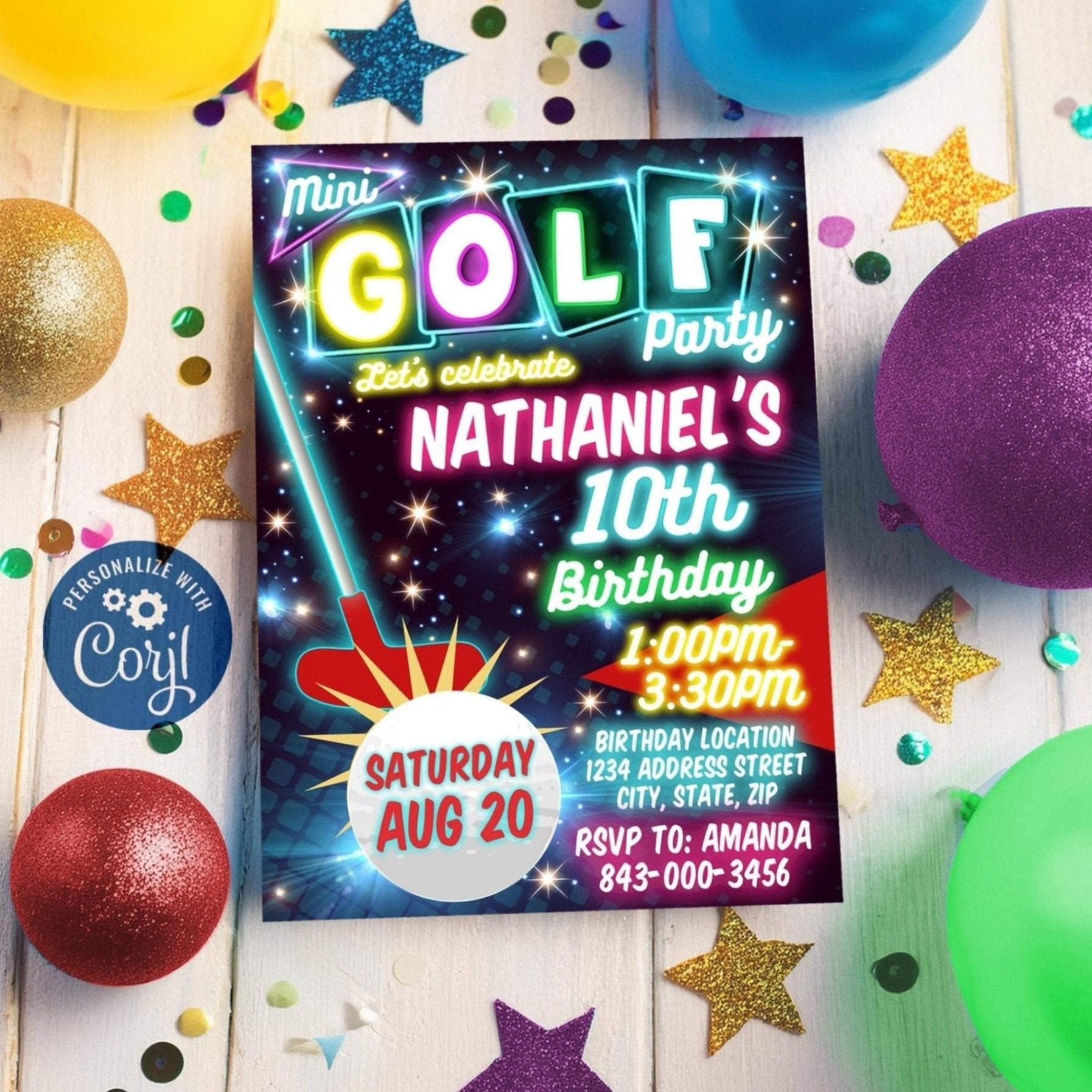 Mini Golf Birthday Invitation - Neon Glow Theme