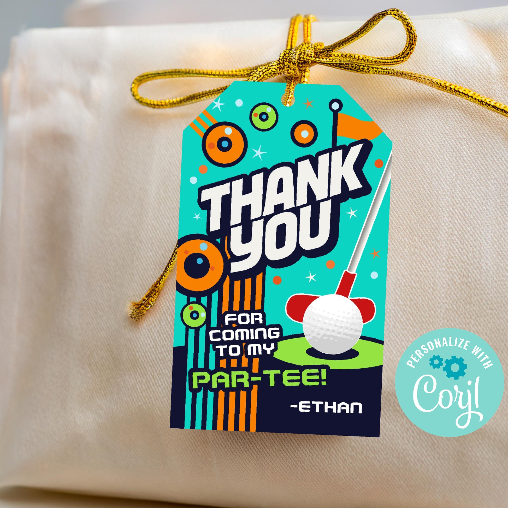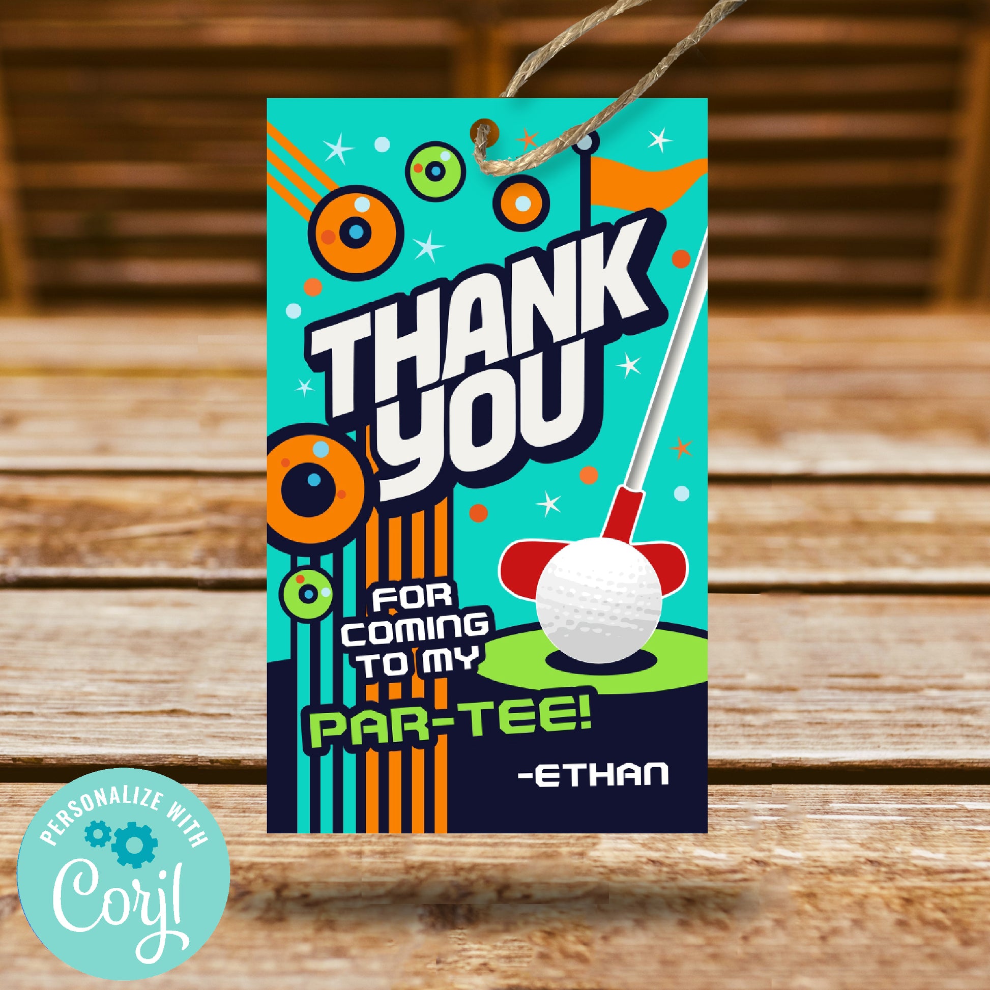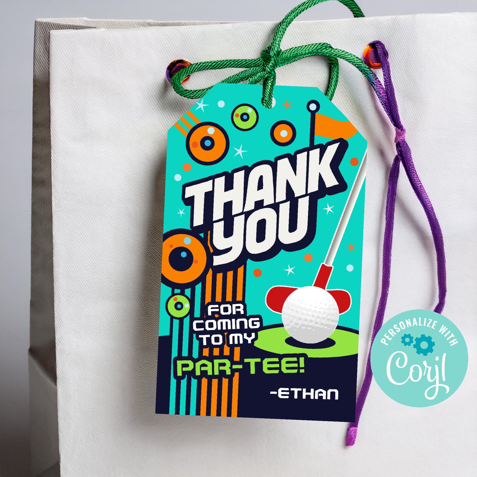Make your mini golf birthday party unforgettable with these fun and colorful Thank You Favor Tags! Featuring bold typography, a playful golf ball and putter design, and bright, energetic colors, these printable tags are the perfect way to thank guests for coming to your golf-themed par-tee!