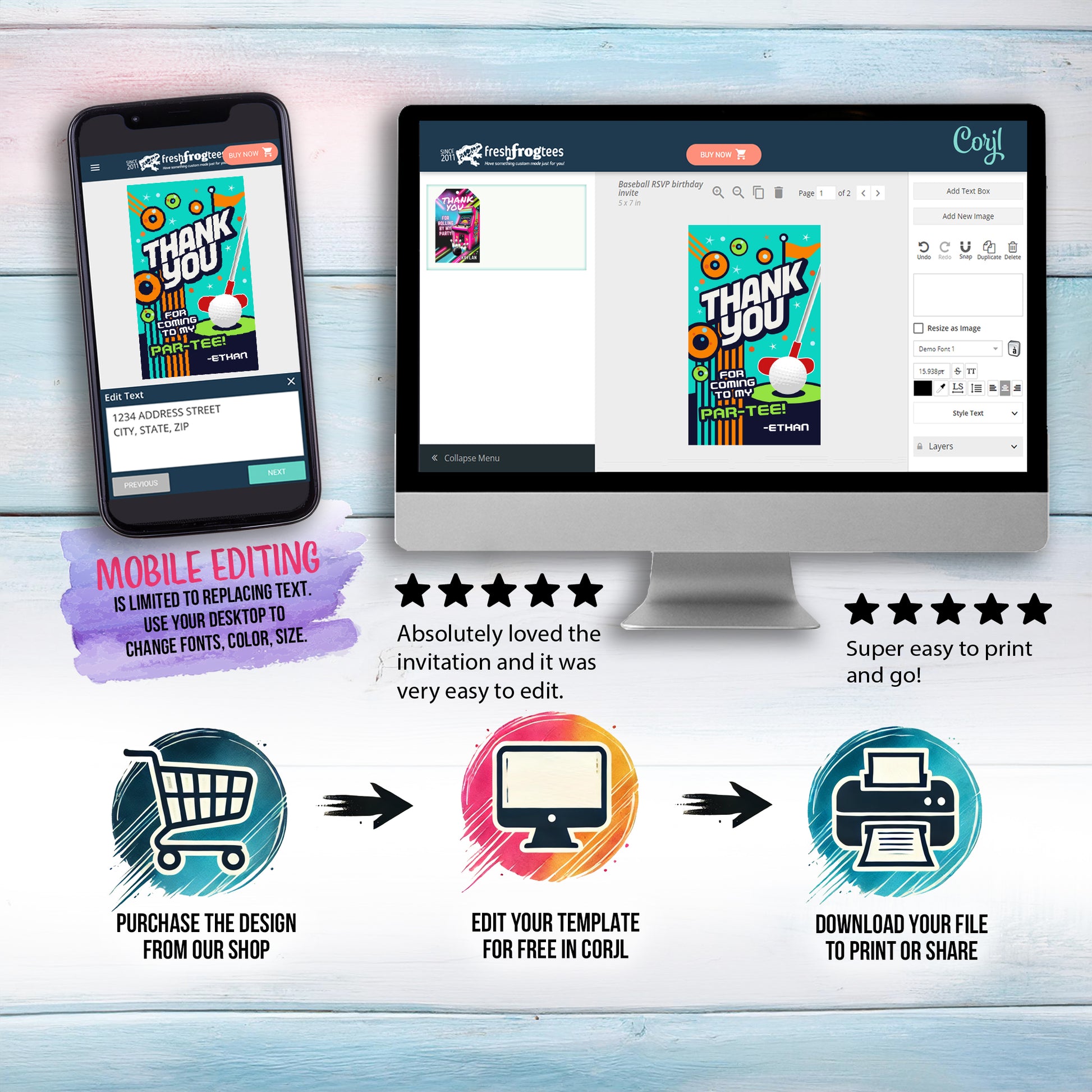 Edit your items at Corjl.com right after purchasing.