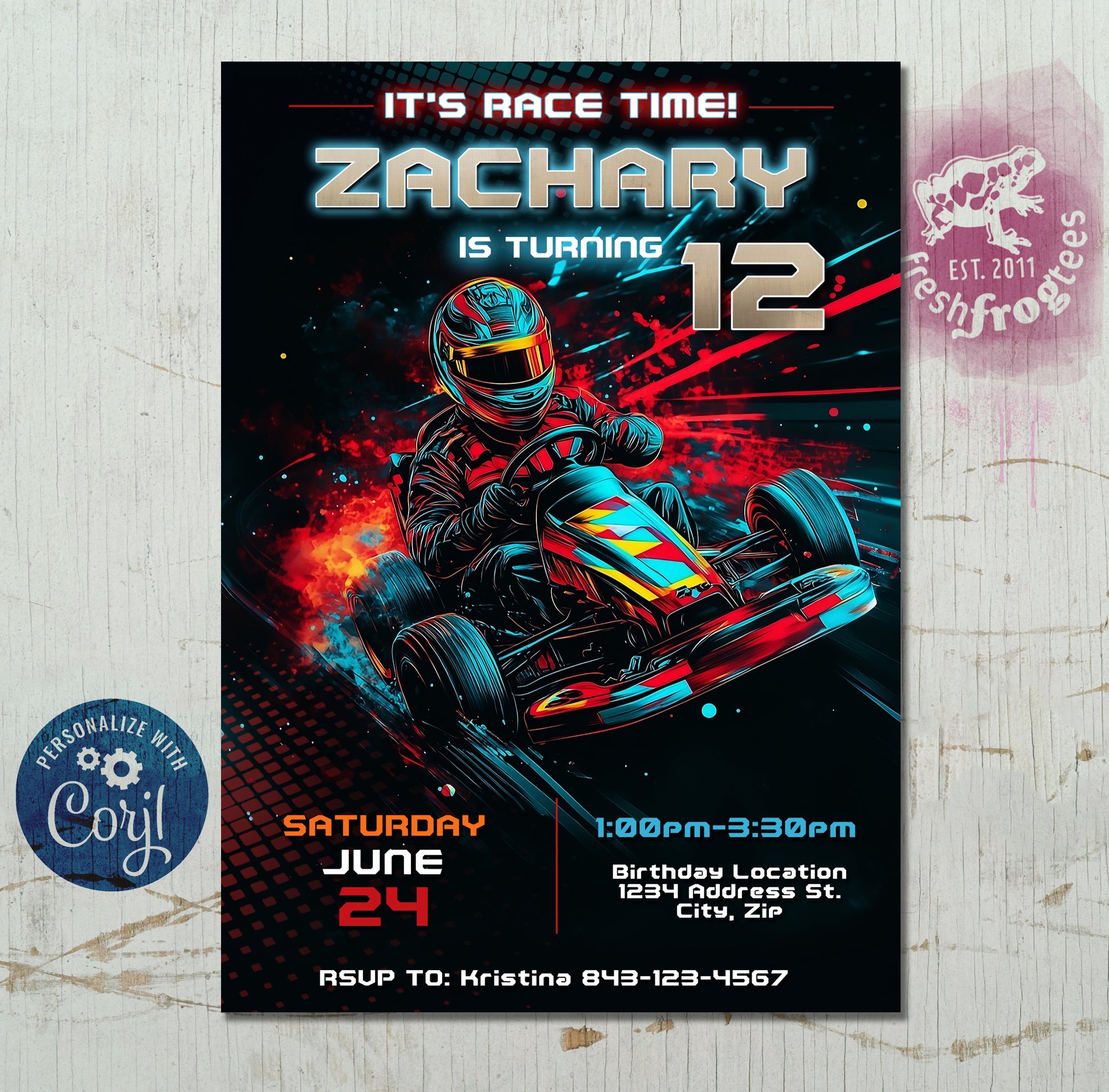 Personalized Go Kart Birthday Invitation | Race Car Party Invite for Kids template