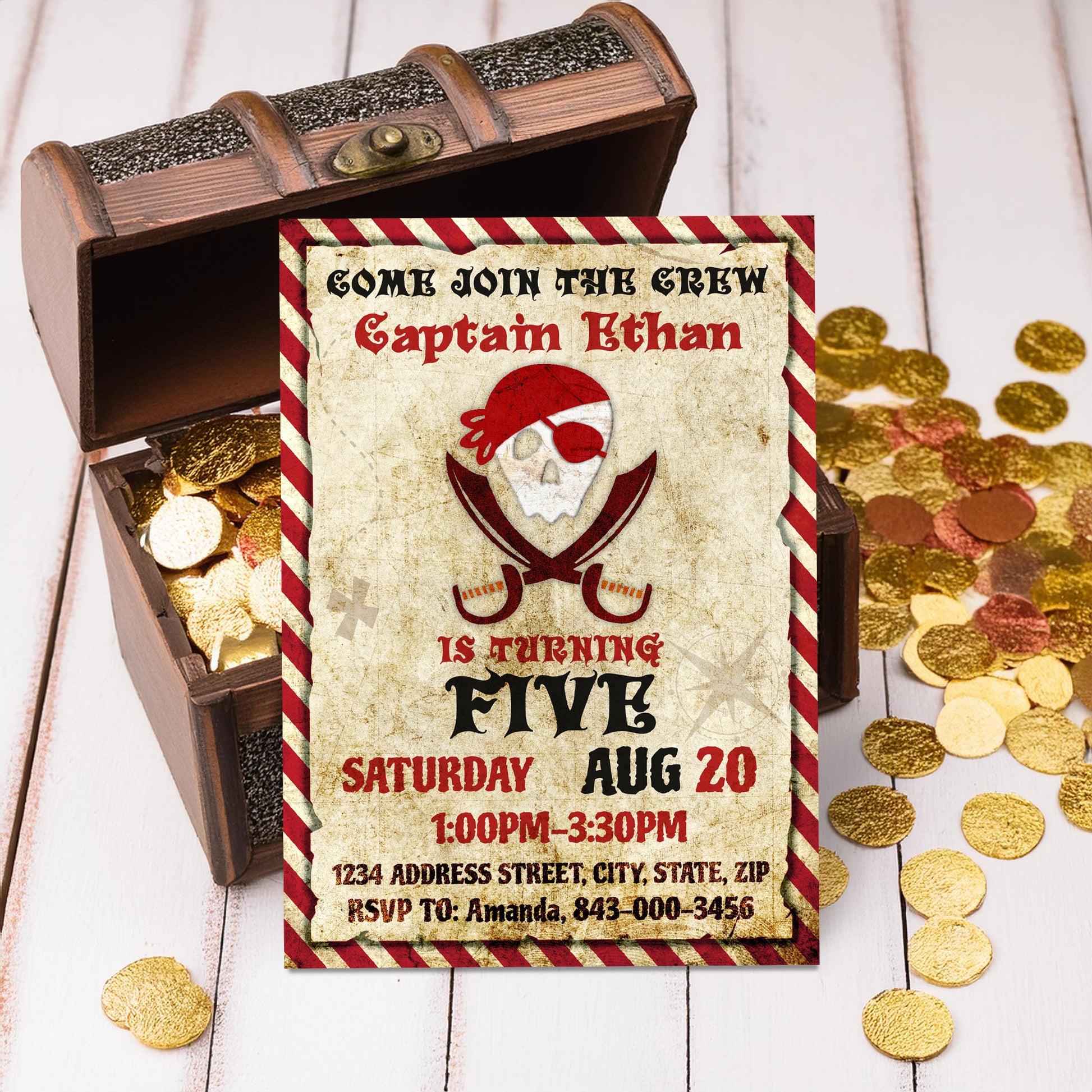 Find the perfect Pirate Birthday Invitation for your child's party! Personalize and print easily at home. Our themed template captures the spirit of adventure with pirate-themed elements. Set sail for a memorable celebration with this customizable invitation. Ahoy, matey!
