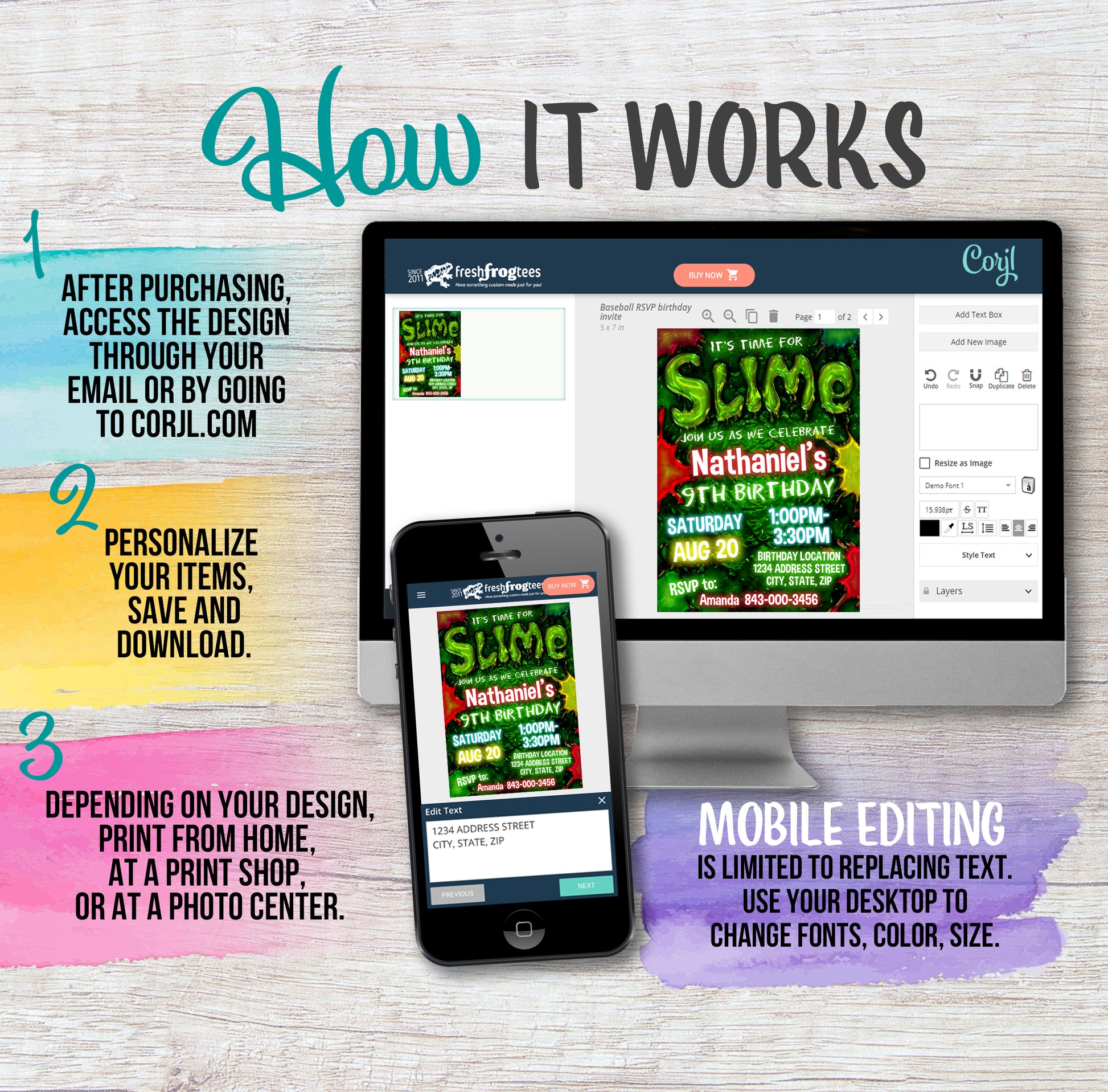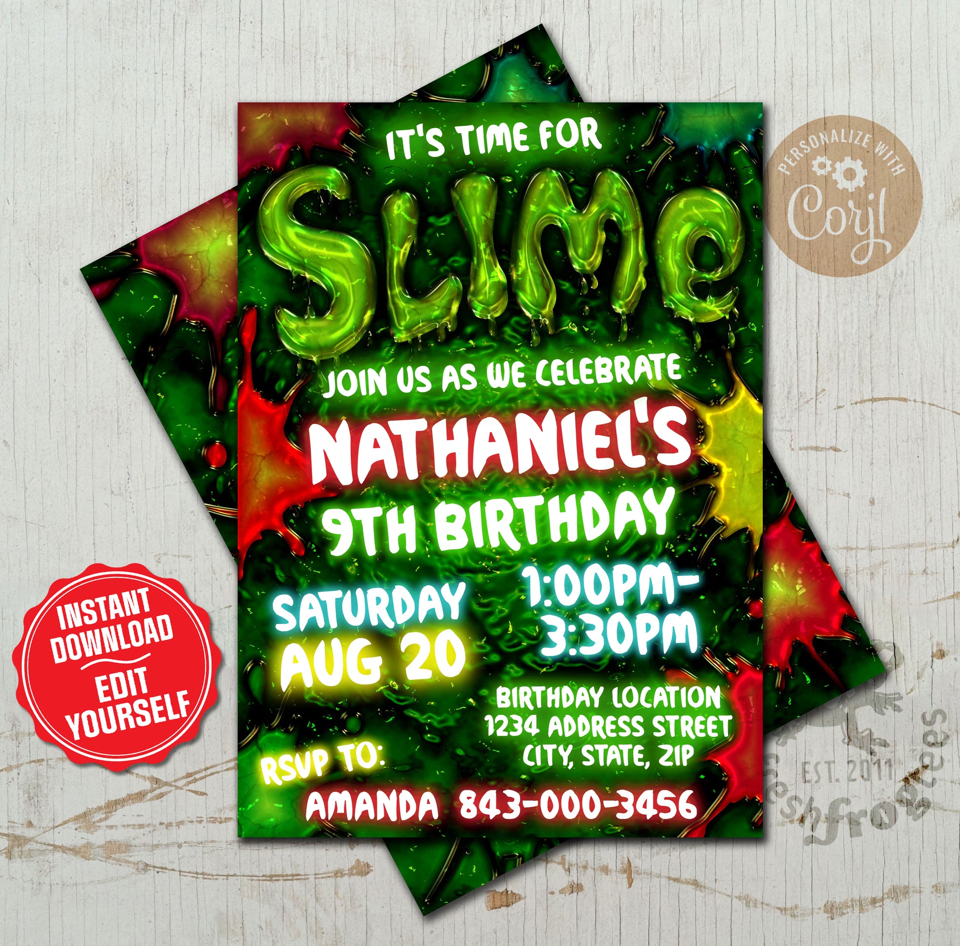 Slime birthday invitation printable digital invite - EASY EDIT!