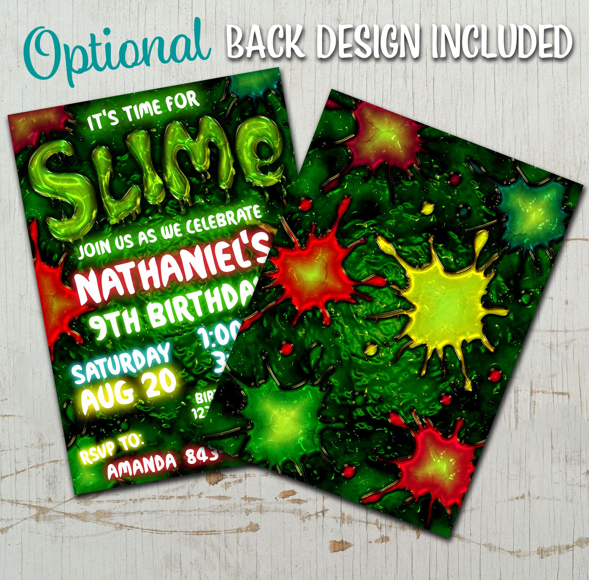 Do you have a slime obsessed kiddo in the family with a birthday approaching? This slime birthday invitation is perfect for a slime themed birthday party. You will be able to customize the text and age or just leave the number off. Make your kiddos birthday party special and memorable. ORDER TODAY!