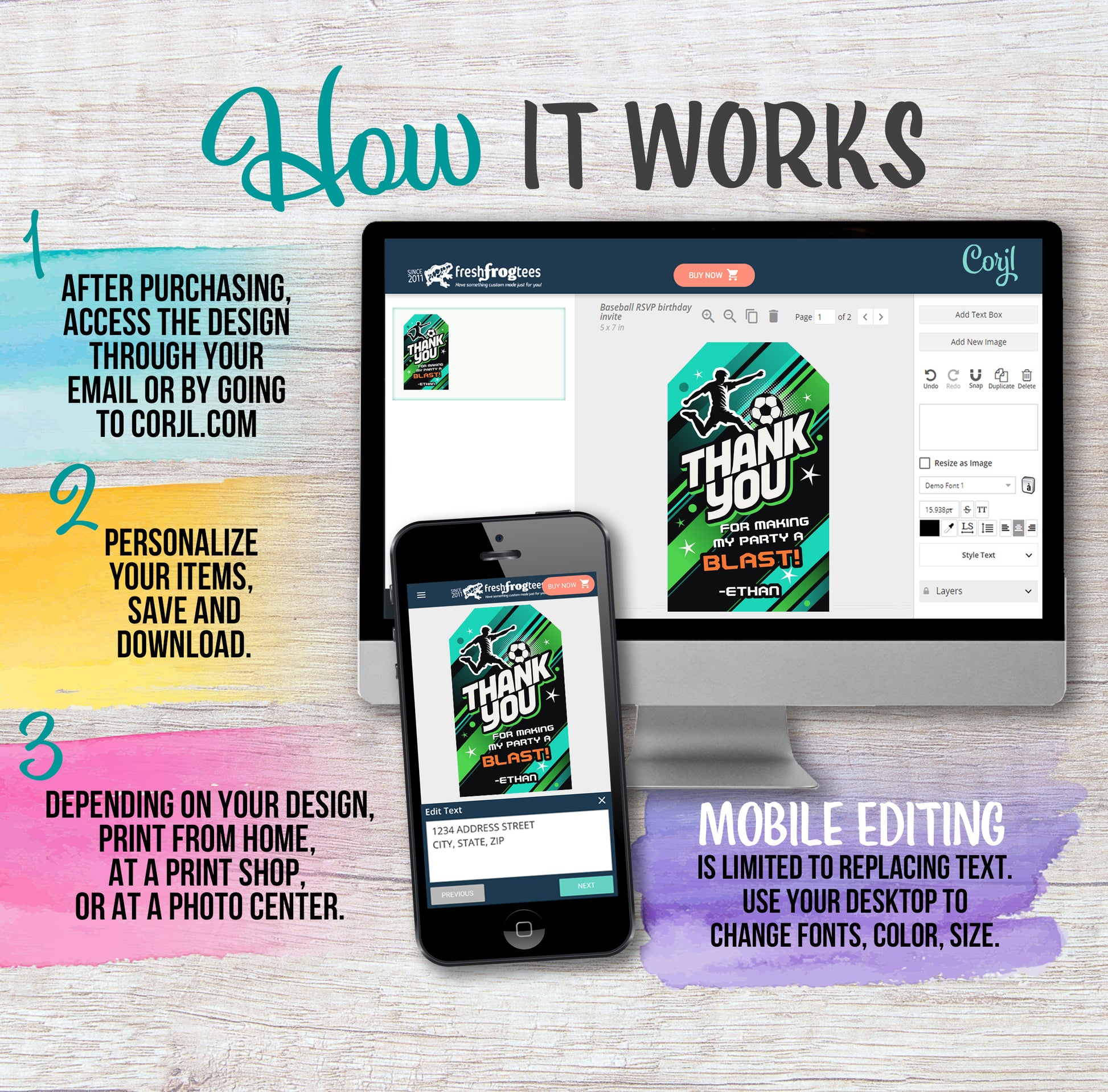 ✔ Easy to use platform. Approve your proof immediately after personalizing/download and print.