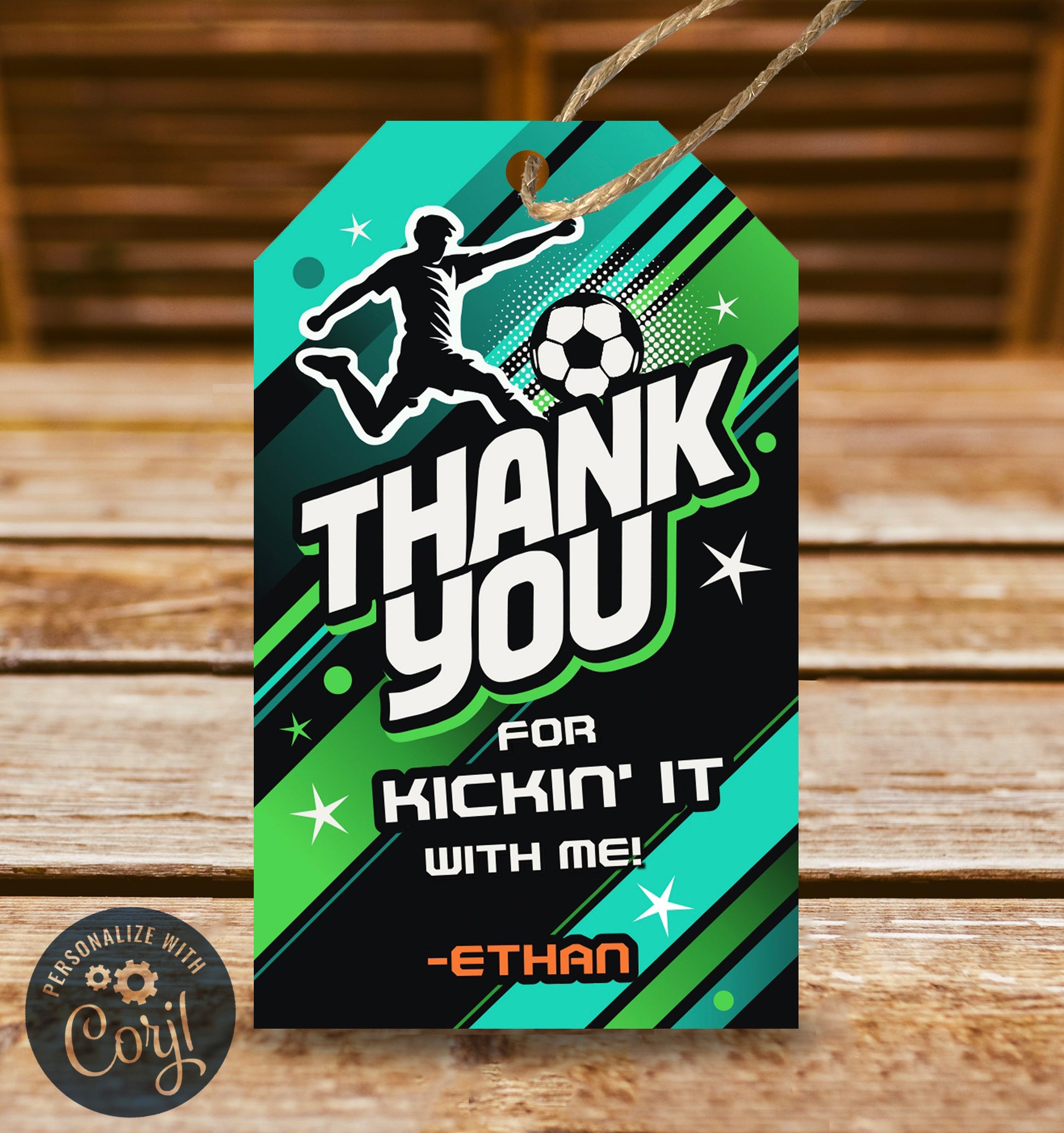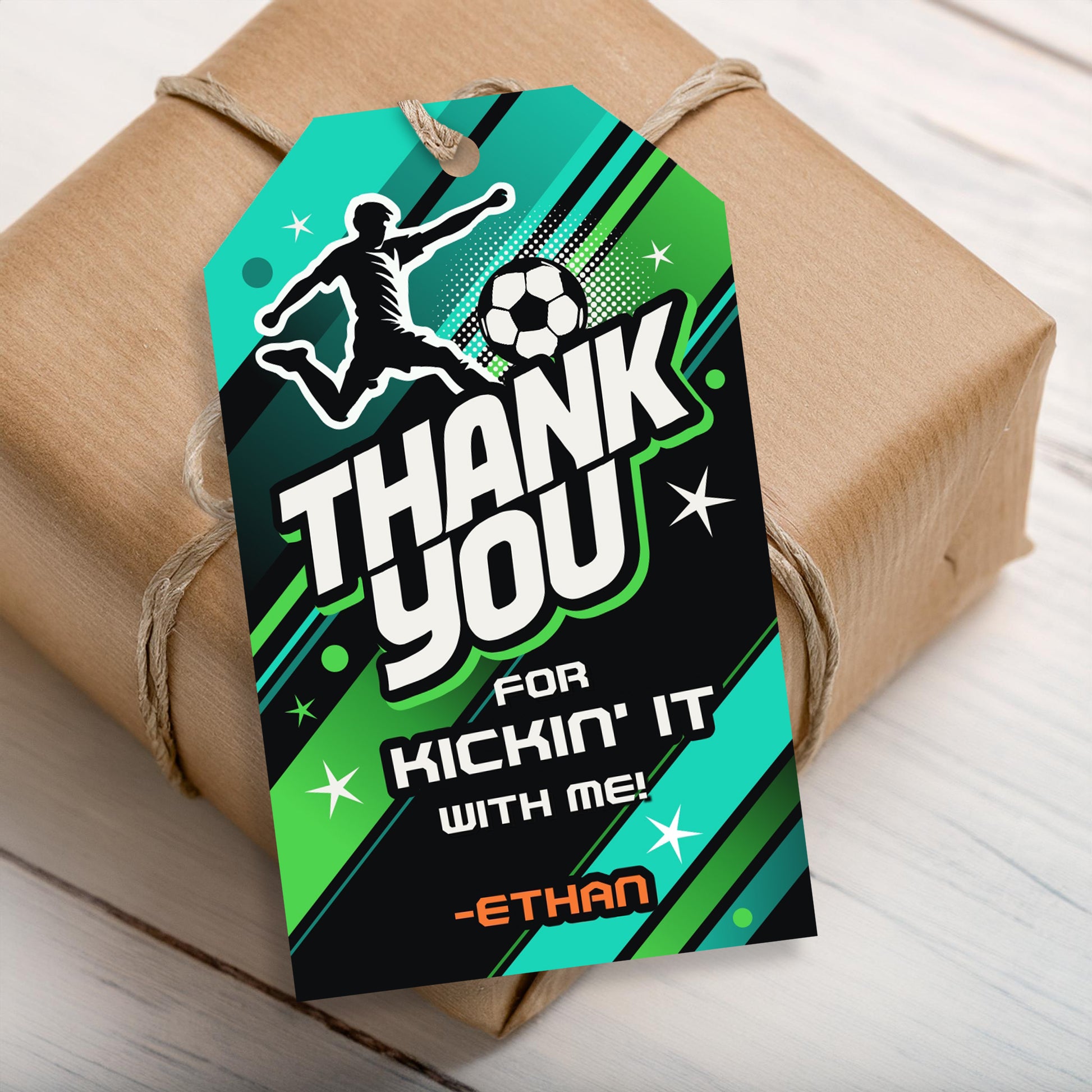 Add a special touch to your celebration with our Soccer Thank You Tags! Perfect for soccer birthday party favor gift tags, these stylish and customizable tags express your gratitude to guests in a fun and memorable way. Each tag features vibrant soccer-themed designs, making them ideal for any young soccer fan's birthday party. Easy to attach to goodie bags, party favors, or thank-you notes, these tags will enhance your party decor. Show your appreciation in style with our Soccer Thank You Tags – a must-have for your celebration!