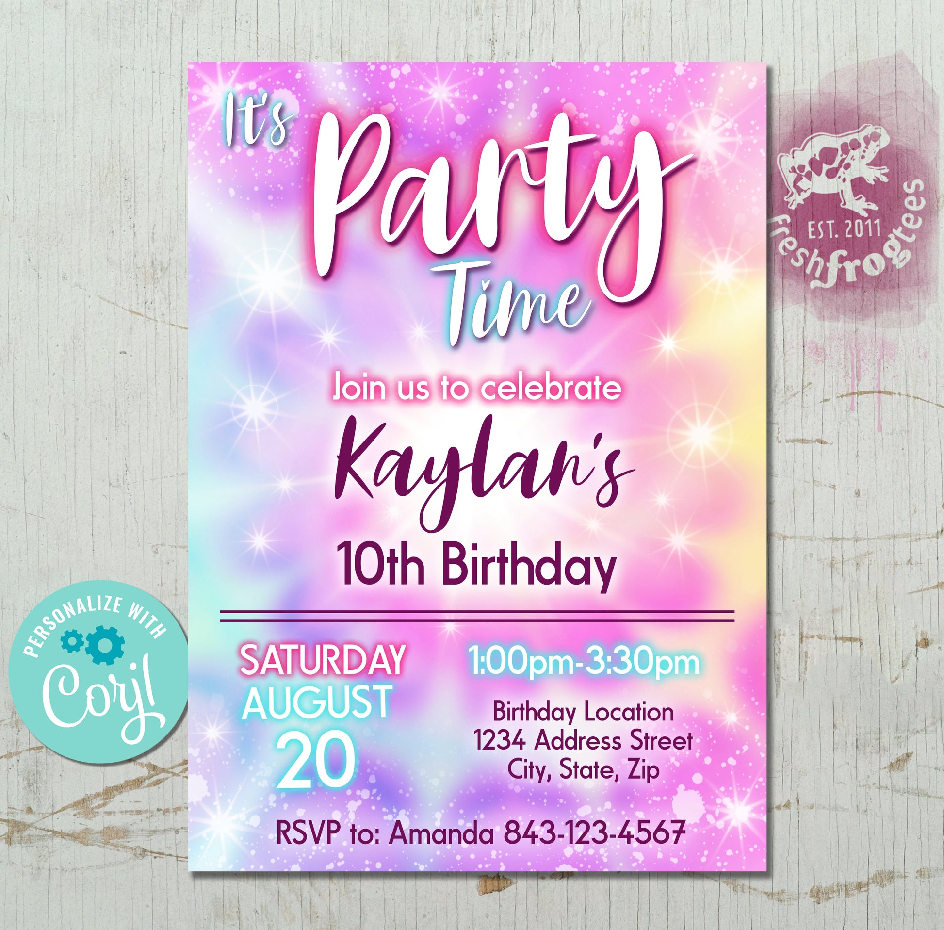 Celebrate in style with these vibrant Tie Dye Birthday Invites! Perfect for any fun and colorful birthday party, these invitations are sure to set the tone for a groovy celebration. The unique tie dye design adds a playful touch, making them stand out and get your guests excited for the party ahead. These invites are a stylish way to kick off your special day. Get ready to spread the joy and send out these eye-catching Tie Dye Birthday Invites to your guests!