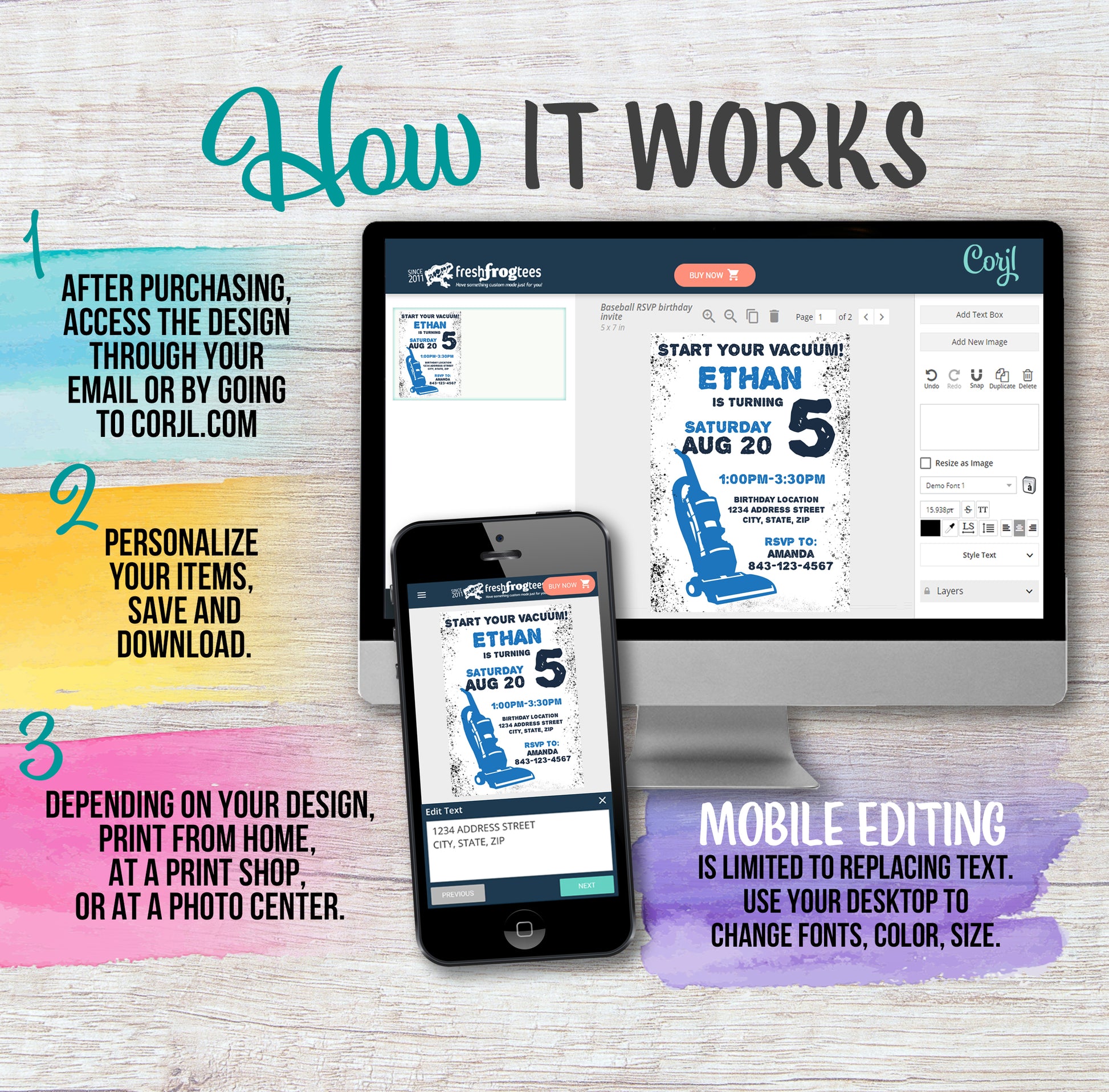 Edit your items at Corjl.com right after purchasing.