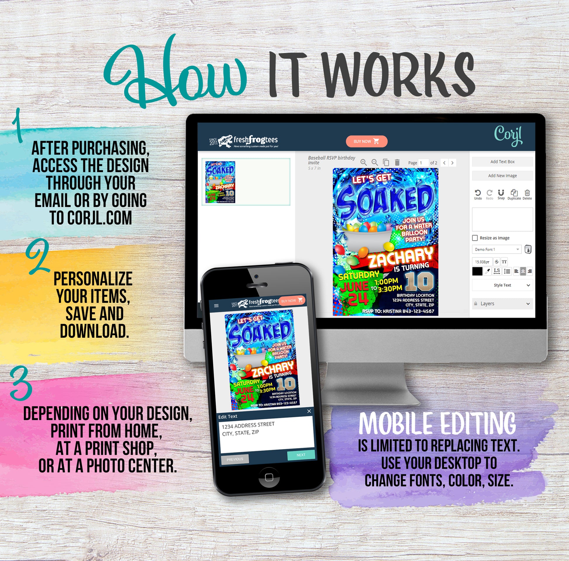 Make a splash at your child's birthday party with our fun and vibrant water balloon birthday party invitation template! Perfect for summer celebrations, this customizable design is easy to personalize with your party details. Download, print, and send out invitations that capture the excitement of your water balloon bash. Ideal for boys and girls, this template adds a burst of fun to your party planning. Shop now and get ready to make waves!