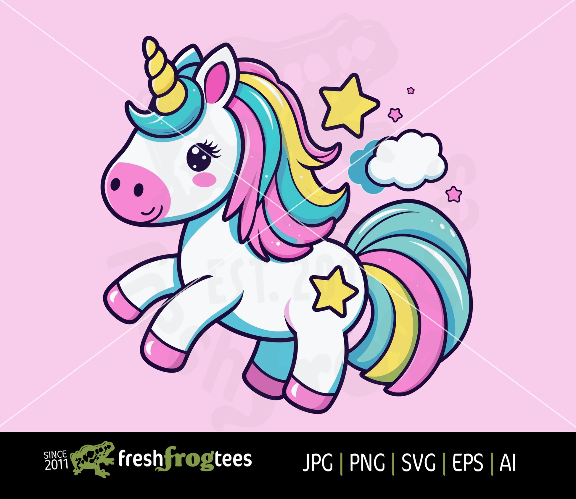 Looking for a magical touch to add to your projects? This whimsical Unicorn Jumping Colorful Clip Art is perfect for bringing a splash of enchantment to your designs. With vibrant colors and playful details, this adorable unicorn is ideal for print on demand, making it great for t-shirts, invitations, party decor, and more. Whether you're crafting for a birthday party or creating a magical theme, this clip art adds a charming, fantasy feel that kids and adults alike will love. Get creative with this whimsical unicorn—it's your go-to for unique and fun designs!